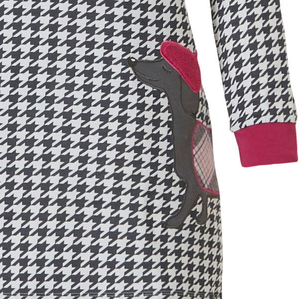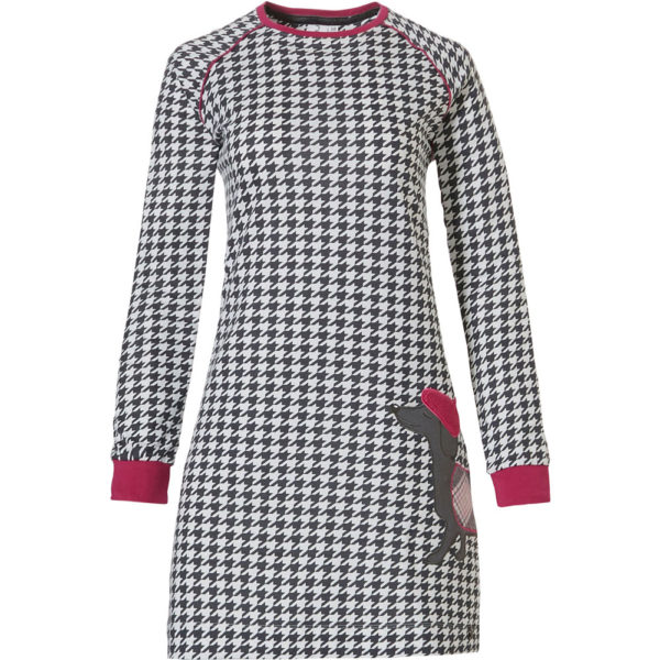 Chemise de nuit jersey pied de poule noir et blanc bordé de rouge