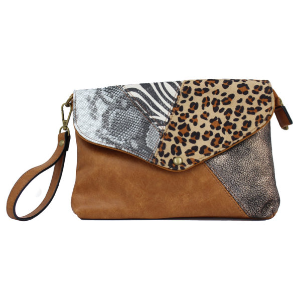 Pochette à rabat fermé par une pression.