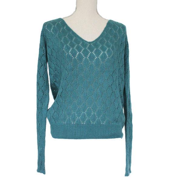Maille fantaisie légèrement ajourée,il peut se porter à même la peau
