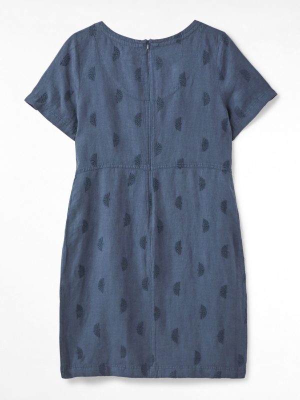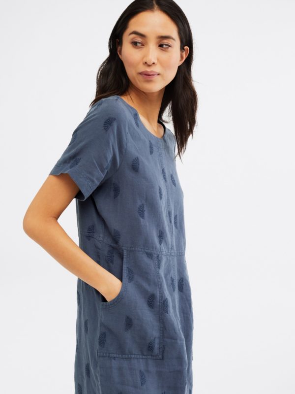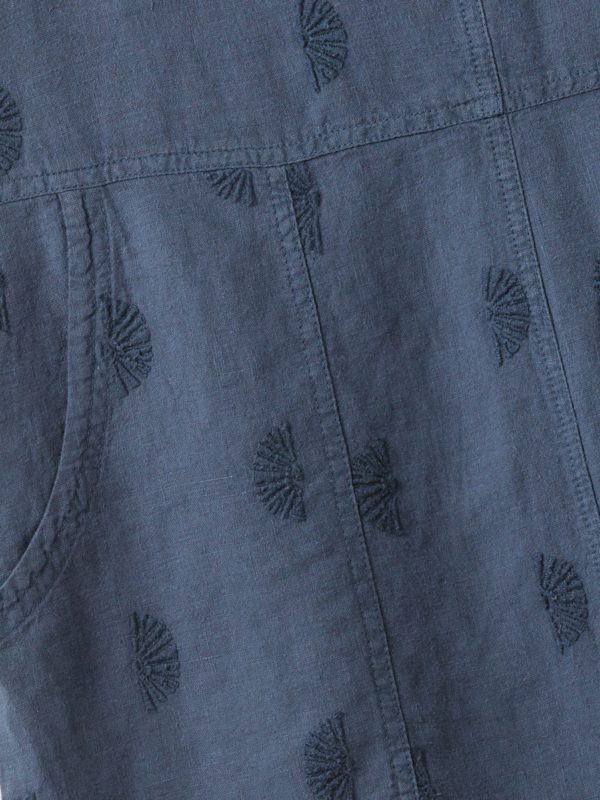 Robe longue en lin avec des broderies en coton ton sur ton.