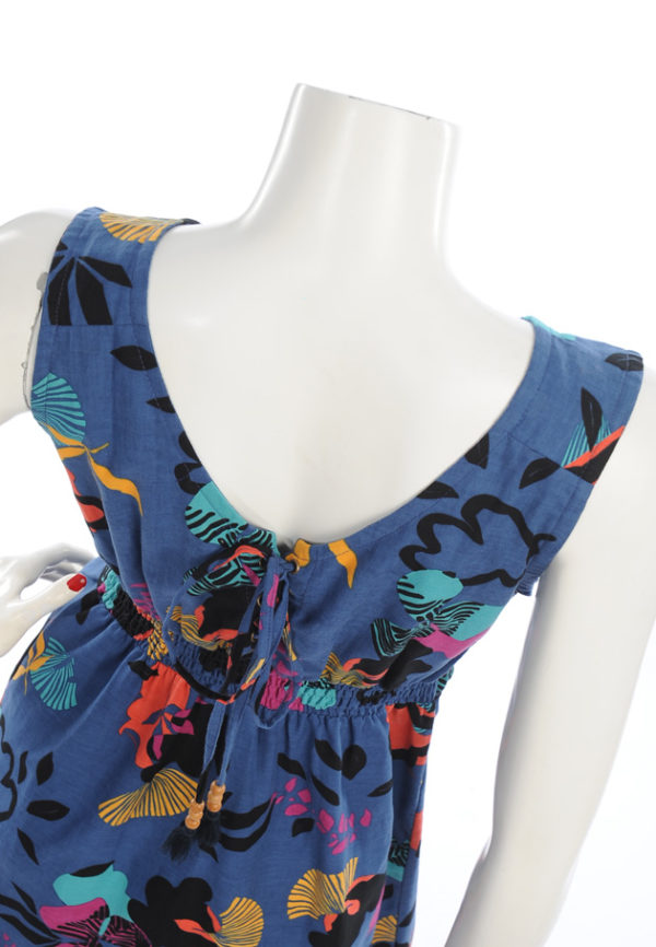 Sans manches avec une fantaisie à la ceinture sur l’avant et la taille élastiquée sur l’arrière.4