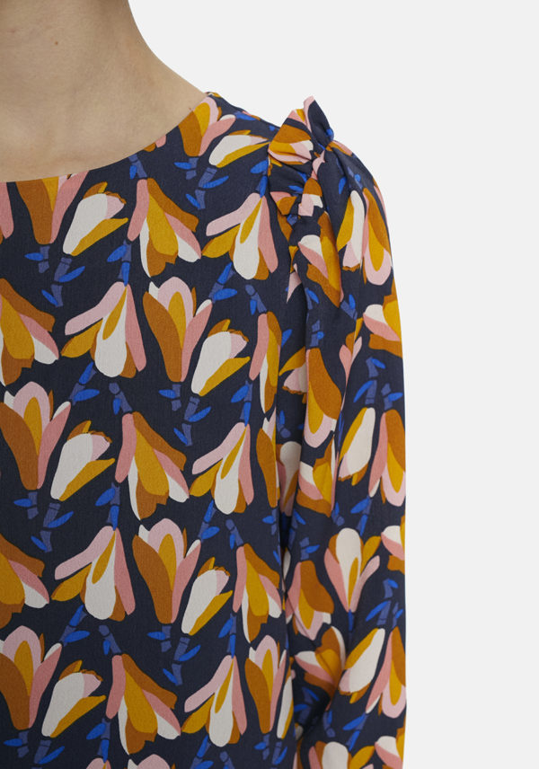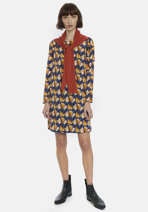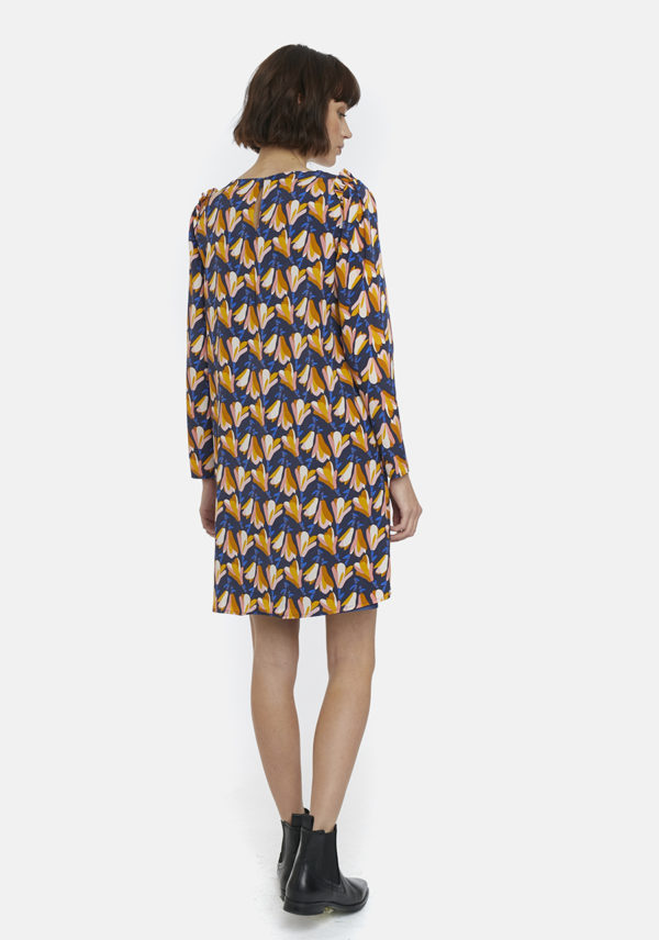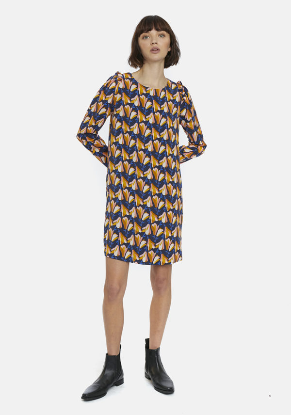 Petite robe coupe droite à l’ imprimé coloré sur fond bleu