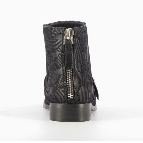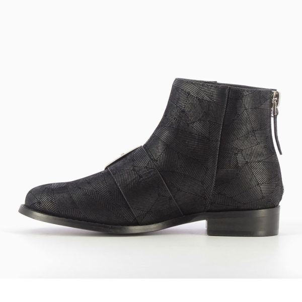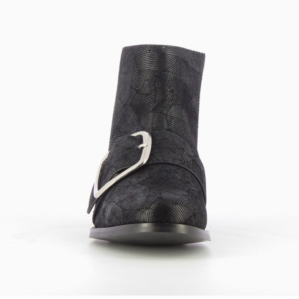 Leur simplicité, rehaussée par une grosse boucle argentée qui donne du caractère et du style à ces bottines classiques. Côté look, on mise sur des basiques comme un jean slim brut retroussé et une chemise blanche blousée pour un look dandy maîtrisé.